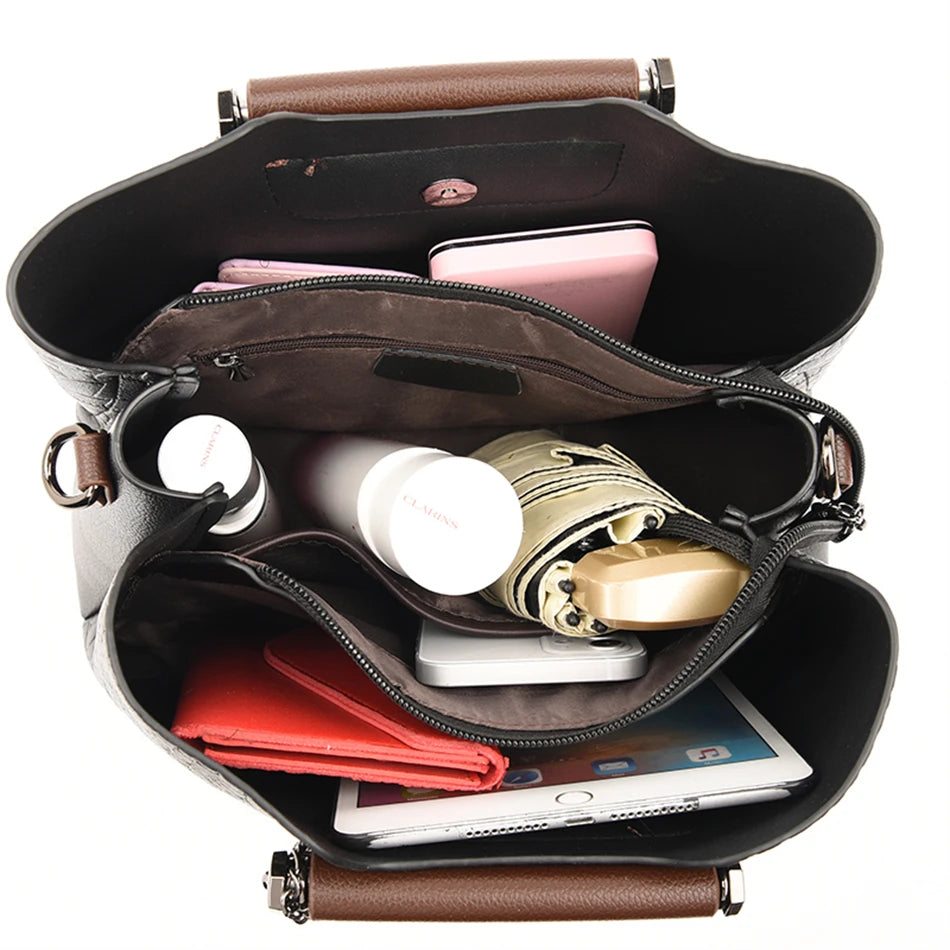 Brand Leather 3 Layers Alligator Crossbody Bag for Women Female Shoulder Messenger Sac Luxury Designer Ladies Handbags