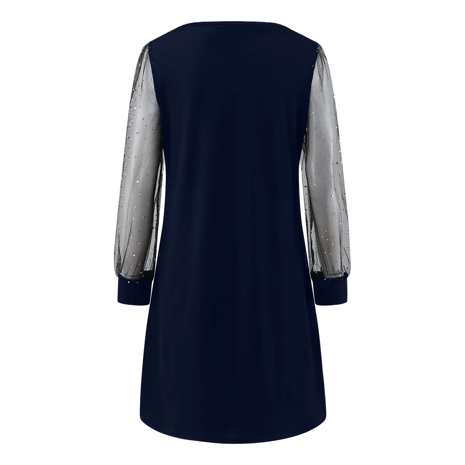 Ladies New Spring And Summer Mesh Printed Long-sleeved Casual Sexy Dress