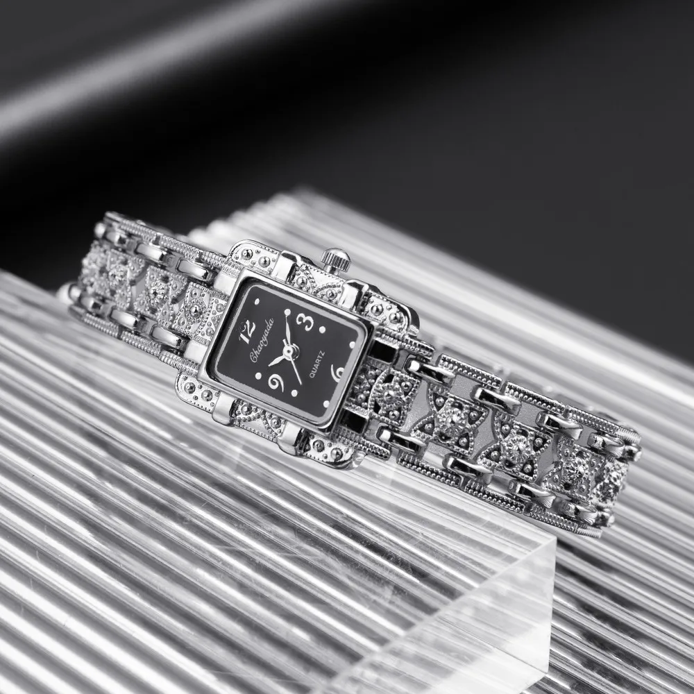 Fashion Luxury Women Silver Beauty Rectangle Dial Designer Ladies Quartz Wristwatch Exquisite Metal Bracelet Watches Female Gift